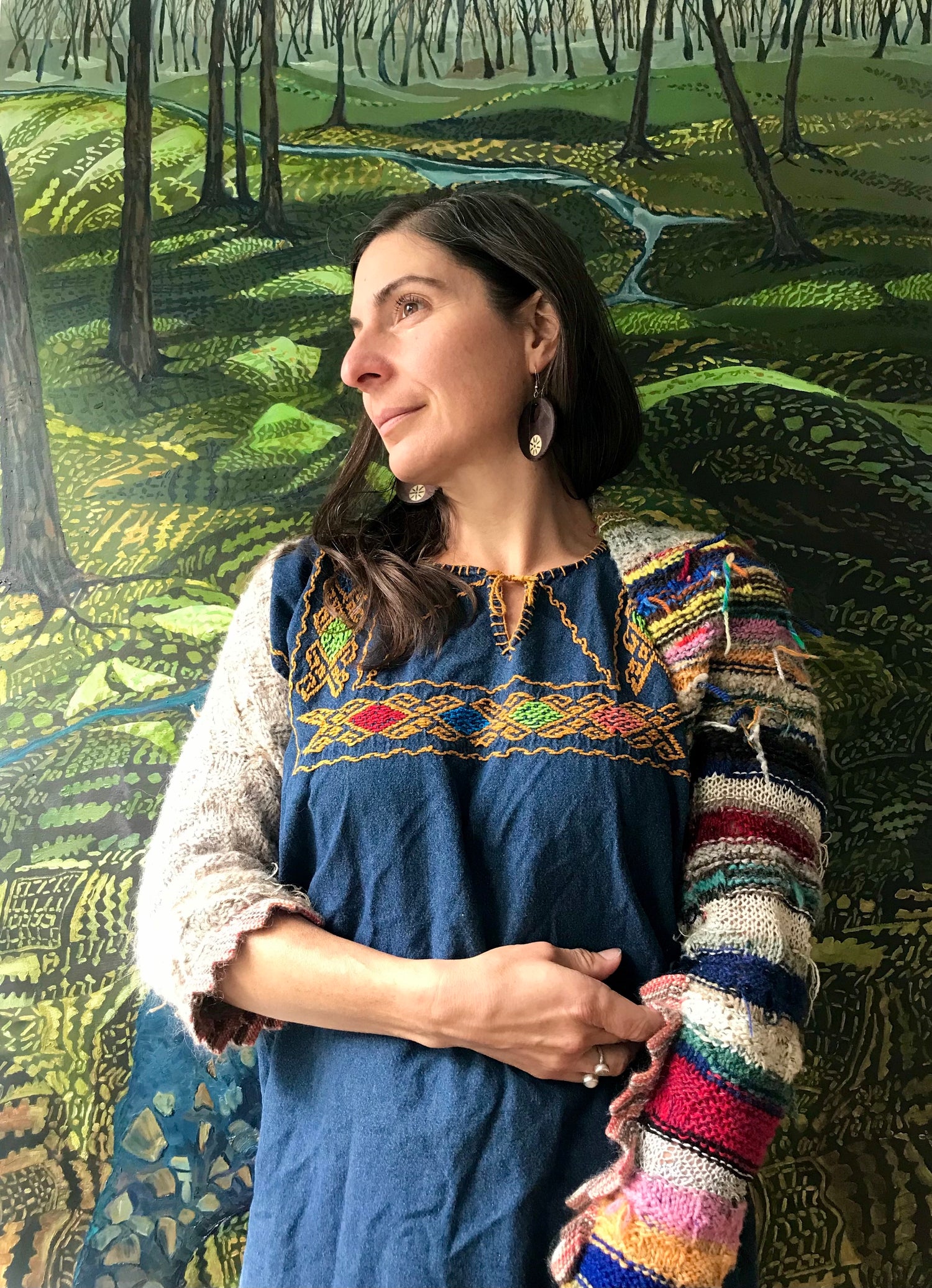 Designed and knit using remnants from weaving. Hand-dyed linen and cotton mixed with natural colours and previously dyed fibres